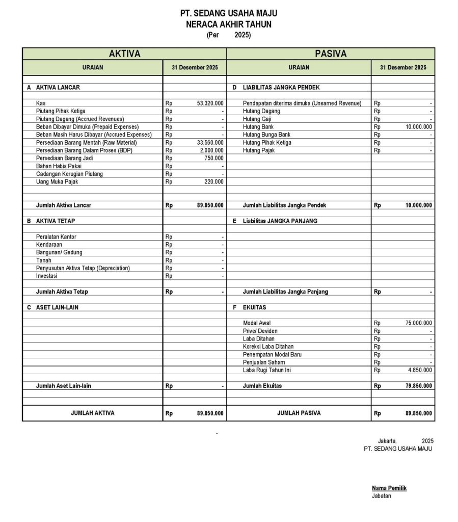 - Catatan keuangan lainnya yang diperlukan (detail melalui balasan email PO).